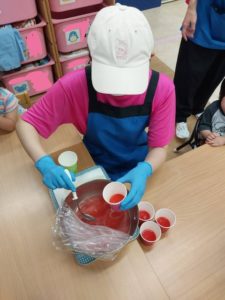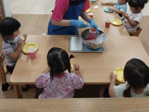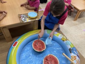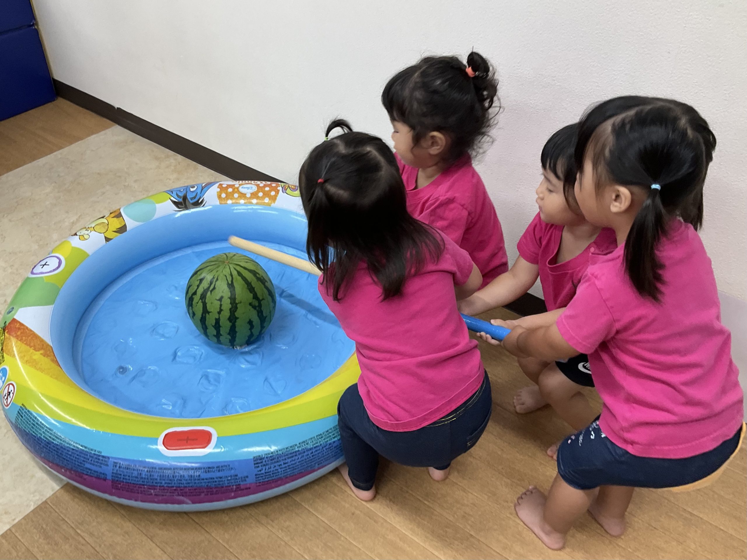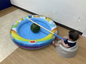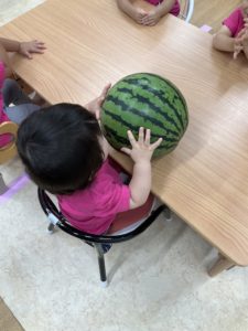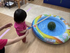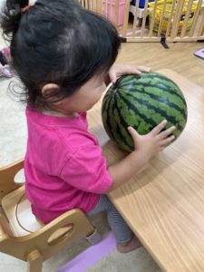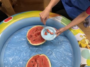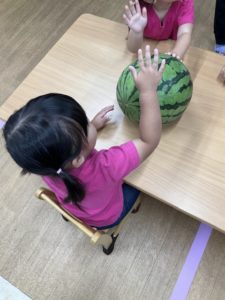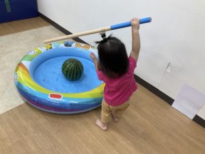 8月の食育はみんなですいか割りをしました!