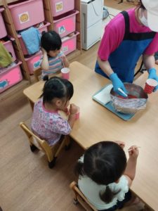 夏真っ盛り、子ども達は毎日水遊びを楽しんでいます。