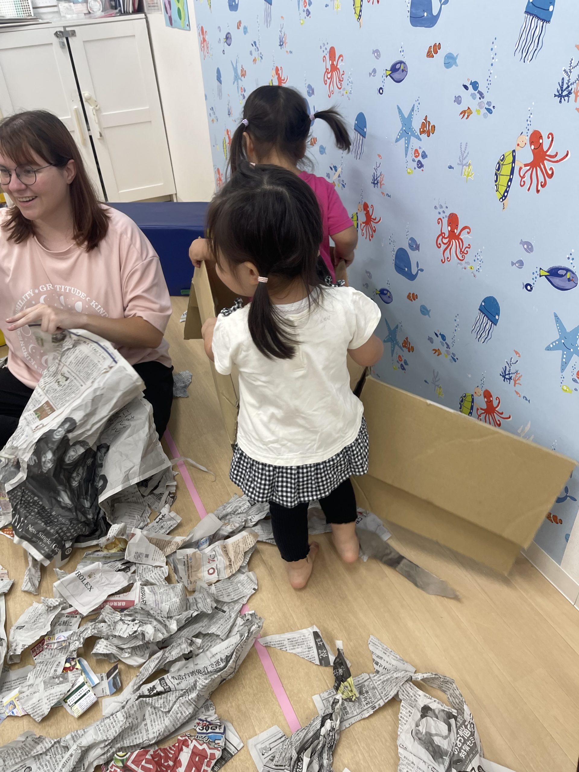 アリス郡家保育園今日は新聞紙遊びをして楽しんだよ♪
